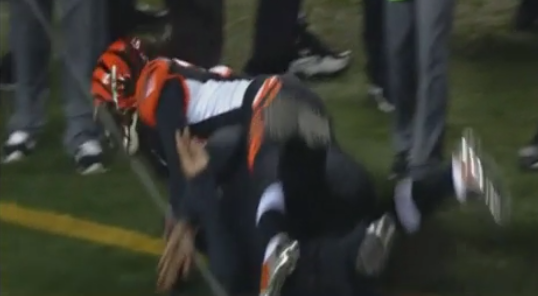 This Vine is a pretty good summation of the Cincinnati Bengals night. Bengals CB Dre Kirkpatrick crushed his coach Marvin Lewis on the sideline...