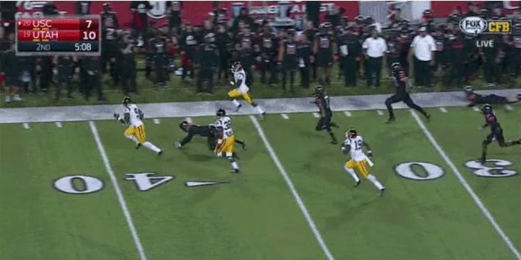 Because the NCAA is dumb, this only goes down as a 100-yard kick return. But USC freshman phenom Adoree Jackson took this kickoff back...
