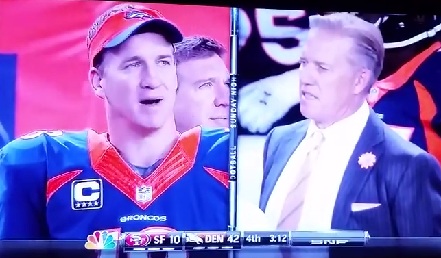 It appears that Peyton Manning was not a fan of the 49ers taking a timeout late in the fourth quarter of a blowout game....