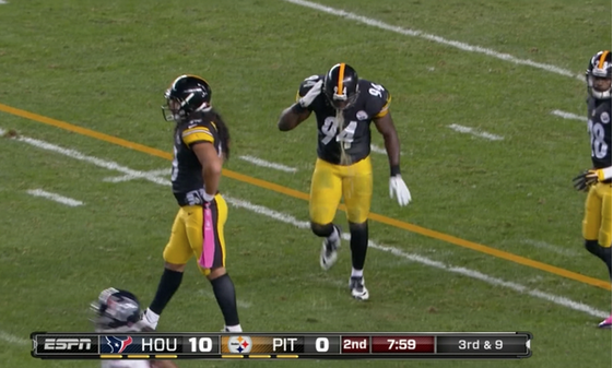 Looks like Pittsburgh Steelers linebacker Lawrence Timmons was having some conditioning issues on Monday Night Football. Timmons vomited on the field and then stayed...