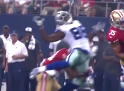 Dez Bryant took a huge shot from 49ers safety Antoine Bethea on a pass that eventually would be picked off by Tony Romo. Bryant...