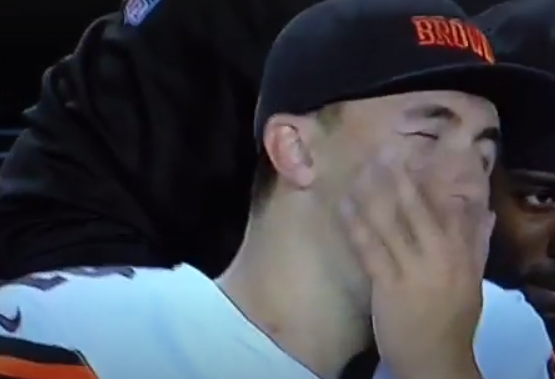 Amazingly, Brendan Porath caught the Browns PR guy Rob McBurnett apparently telling Manziel that cameras caught him giving the finger. Manziel did not seem pleased with himself.