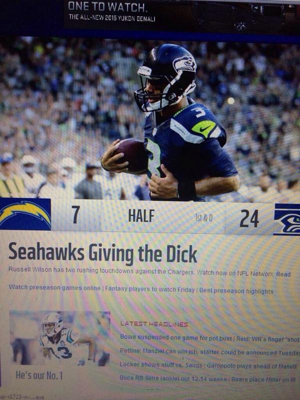Some NFL.com intern is getting fired for the headline, “Seahawks giving the Dick.” [@jailposejesus, bso]