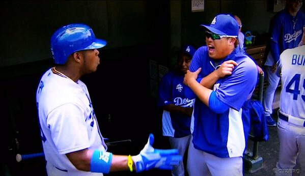 Yasiel Puig and Dodgers teammate Hyun-Jin Ryu have a history of entertaining celebrations together. On Saturday things were no different as Puig went with the...