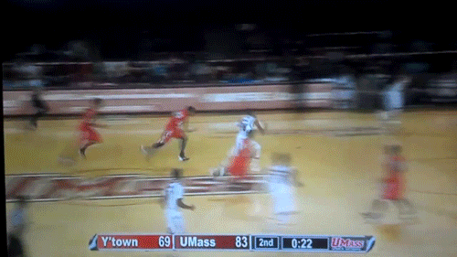 UMass basketball player Raphiael Putney threw down this massive dunk on Youngstown State, where he took off from just inside the free throw line....