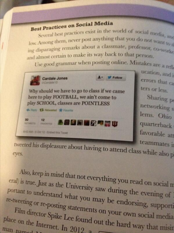 It appears that Ohio State quarterback Cardale Jones infamous tweet has become immortalized in a textbook at Ole Miss. The book given out to...
