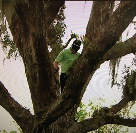 Nicholas Thompson’s tee shot on #17 during the third round of the Arnold Palmer Invitational landed in the water. It was propped up enough...