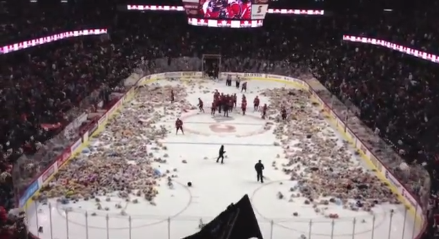 A Teddy Bear Toss is always an incredible sight to see. I’ve never seen it done mid-game, usually it’s done in between periods so...