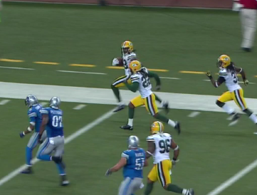 Green Bay Packers safety M.D. Jennings had his first career interception on Sunday against the Lions that he ran back for a touchdown. This...