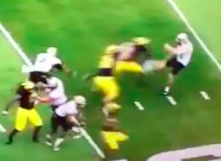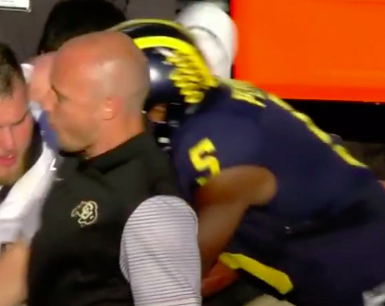 As you can see below, a Colorado player did a bit of trash talking to Jabrill Peppers on a return after he fell into their...