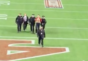 A fan decided to run onto the field during the Monday Night Football game between the San Francisco 49ers and the Los Angeles Rams....