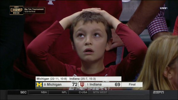 The buzzer beater three by Michigan’s Kam Chatman gave us this sad-face from a young Indiana fan. Let’s cut to a live shot of...