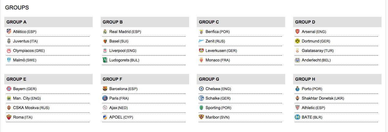 Group E: Bayern Munich, Manchester City, CSKA Moscow, Roma.