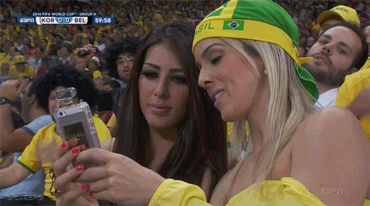 ESPN and FIFA know how to spot the cute girls at every World Cup match (and we’re certainly not complaining, right?). Too bad these two cute girls, representing Brazil during the Korea-Belgium match, had their duckface selfie denied by a flag and several guys. Booo!!!