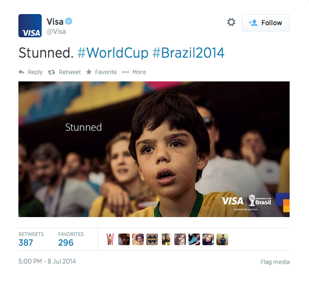 World Cup Visa Tweets Out The Feelings Of Every Brazilian Published July 8, 2014 This seems like the best way to summarize the feelings of every Brazilian fan that watched the Germany-Brazil game. In this article:Brazil Recent Posts Former Michigan Coach Hired By Notre Dame To Join Staff No. 1 Player In Michigan Could Be Heading Elsewhere, Trending To Top B1G Program Michigan Tending To Land Specialist After Change In Recruitment Michigan Primed To Land Multiple Top 2026 Recruits Upcoming? Michigan Loses Out On Transfer Portal Target From A Rival