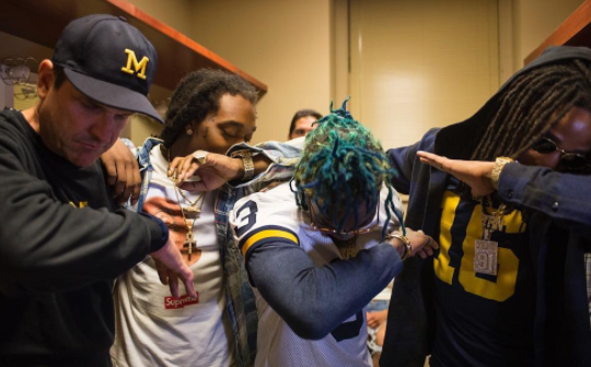 “Drop off, Harbaugh, Grandpa…” Listen to Migos name drop Jim Harbaugh in the video below (at 1:20 mark): https://www.youtube.com/watch?v=2YI7dInIx-w