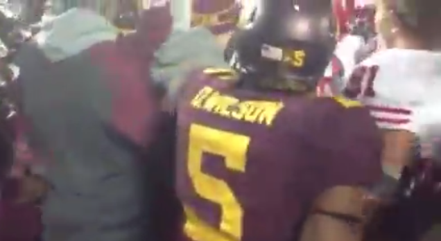 After getting ejected for his involvement in a fight, Ohio State offensive lineman Marcus Hall gave a double-bird gift to Michigan fans in the...