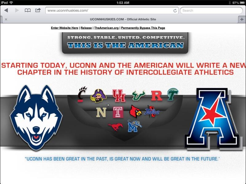 The Connecticut Huskies website changed over this morning to acknowledge the new American Athletic Conference that had formed, and the official death of the...
