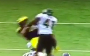 This hit by UCF’s Demeitre Brim on Michigan’s Eddie McDoom resulted in a targeting call and an ejection. McDoom went to the locker early before...
