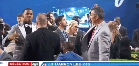 Darron Lee was selected by the New York Jets with the 20th pick. Lee was having none of Urban Meyer’s high five. DENIED pic.twitter.com/my5zcJFI7c...