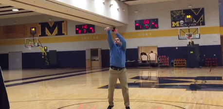 Jim Harbaugh, getting some shots up at the Michigan Basketball practice facility, apparently had a nice streak of made free-throws in a row. Coach...