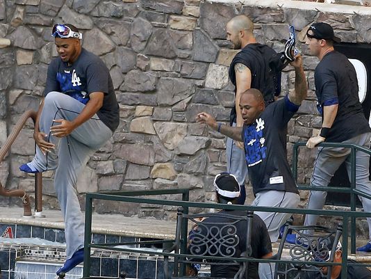 Is there a better way of celebrating an MLB division title but by jumping in the other team’s pool? The Los Angeles Dodgers did just...