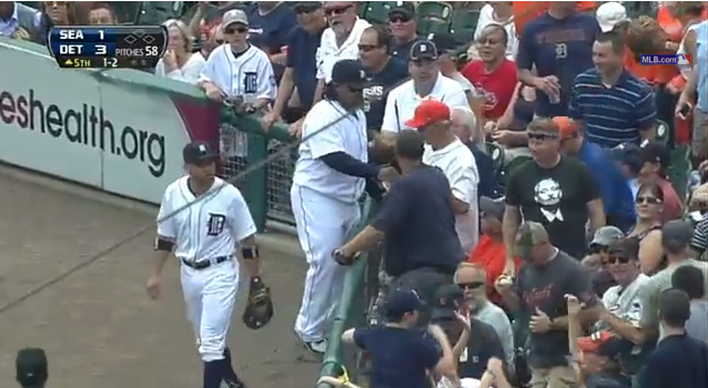 During the top of the 5th Inning, Detroit Tigers first baseman Prince Fielder tried to run down a foul ball and came up just...