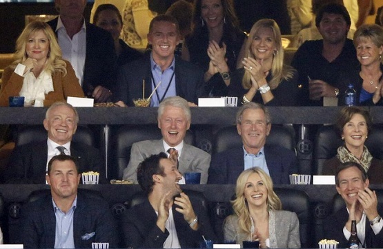 Here are the 42nd and 43rd Presidents seated with Laura Bush, Jason Garrett and his wife Candice Crawford, along with Jerry Jones and Jason Witten.
