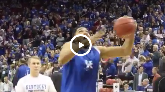 Kentucky’s Karl Towns, who will likely be a top 3 pick in next year’s NBA draft, put on a show for KU fans during yesterday’s practice in Louisville, Kentucky.