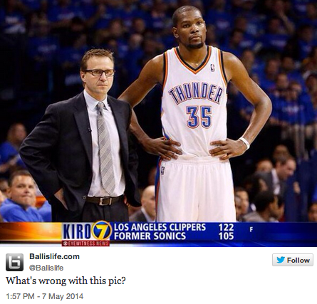 Think someone’s still a little upset about the Seattle Sonics relocating to Oklahoma City? One TV Station in Seattle, KIRO 7, referred to the team as the “Former Sonics” after their Game 1 loss to the Clippers.