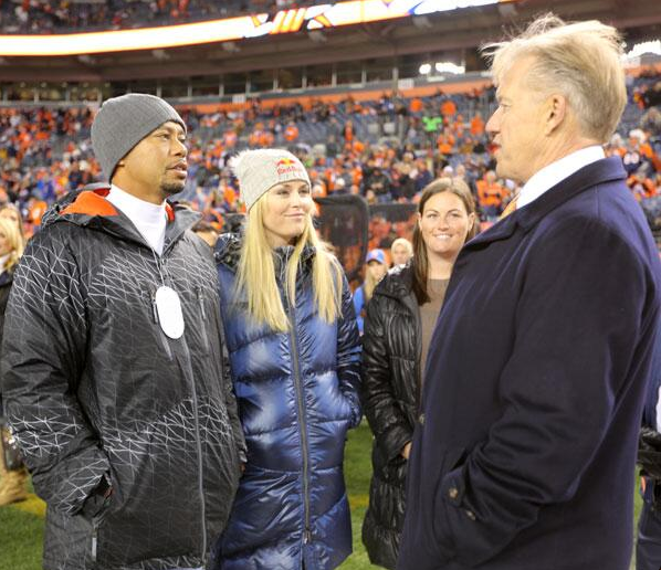 Tiger Woods and his girlfriend Lindsey Vonn were on the sideline in Denver before the Broncos and Kansas City Chiefs game on Sunday night. They were photographed talking with John Elway, and I’m sure Elway and Tiger were talking about Stanford’s disappointing loss to USC on Saturday night.