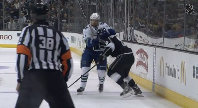 Vancouver Canucks forward Daniel Sedin interfered with Los Angeles Kings defenseman Drew Doughty at the blue line and was called for hooking.  Unfortunately for the referee, he sent Daniel’s twin brother Henrik to the box, leaving Henrik very confused and with a very good claim that he didn’t actually do it.  Quite frankly, I’m surprised that this hasn’t happened before.