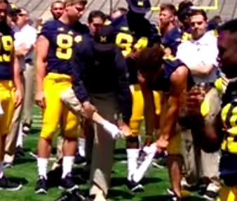 The below video features Jim Harbaugh handing running back Drake Johnson his socks for Michigan’s media day earlier this summer (Johnson had forgotten to put some...