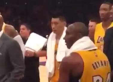 Remember yesterday’s videos of Kobe Bryant getting into an altercation with Dwight Howard? Well know there’s a sideline shot of Kobe, in the Lakers...