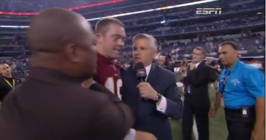 Apparently the Washington Redskins PR guy really didn’t want Colt McCoy to get interviewed after the game. [@cjzero]