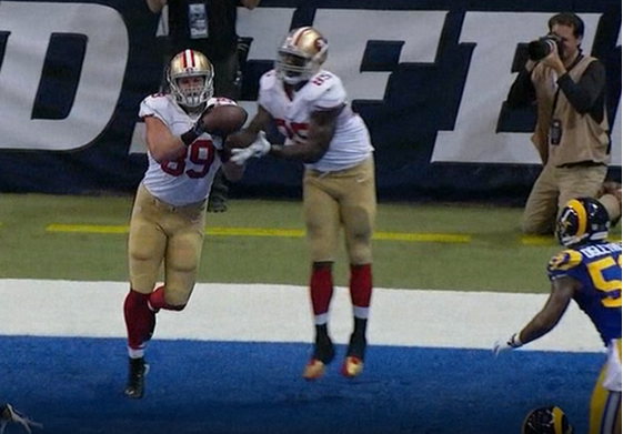 San Francisco 49ers quarterback Colin Kaepernick did a great job keeping the play alive but it was all for naught. Vance McDonald and Vernon...