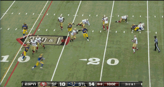 San Francisco 49ers quarterback Colin Kaepernick was on his best on this play against St. Louis. He scrambled away from pressure and then threw...