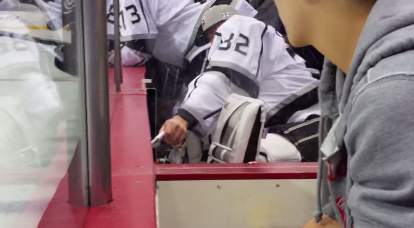 During the Los Angeles Kings-Colorado Avalanche preseason game at World Arena in Colorado Springs, Jonathan Quick helped a fan out and gave him an...