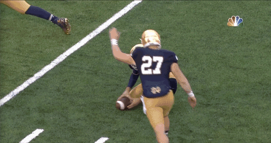 Suffice it to say that handling a wet football is very tough. Notre Dame fans can have a good laugh about this since the...