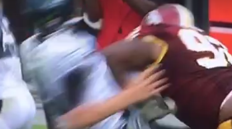 Nick Foles took a bad hit from the Redskins’ Chris Baker during Sunday’s game. Tackle Jason Peters came to the defense of Foles, getting...