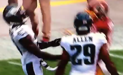 DeSean Jackson made his first catch against his former team, and went to punch the Eagles’ Malcolm Jenkins. Somehow the Eagles were the ones flagged...