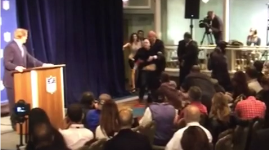 In what I’m assuming was a prank, Benji from the Howard Stern show crashed the Roger Goodell press conference and caused quite a scene....