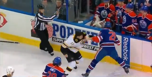 The Boston Bruins were having their way with the Edmonton Oilers, up 3-1 early in the 2nd period. Oilers forward Luke Gazdic was looking...