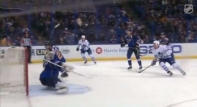 Toronto Maple Leafs forward James van Riemsdyk threw the puck at the net from the halfway and it skipped towards the net. St. Louis...