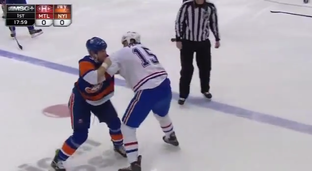 New York Islanders forward Eric Boulton only stands 6’1″ 225 lbs, but he had no problem taking on Montreal Canadiens forward George Parros, who...