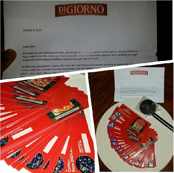After Detroit Lions wide receiver Nate Burleson’s well-documented car accident that broke his arm because he was trying to save his pizza, DiGiorno took...
