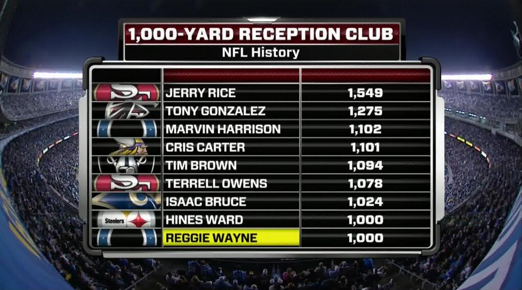In the 4th quarter, Indianapolis Colts wide receiver Reggie Wayne caught back-to-back passes to get into the 1,000 receptions club. Unfortunately when ESPN went...