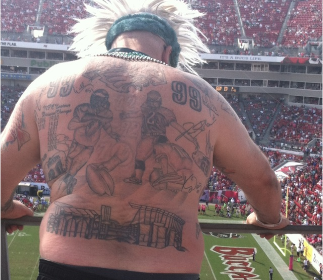 This Philadelphia Eagles superfan was spotted at the Eagles-Tampa Bay Buccaneers game on Sunday and his tattoos are quite unfortunate. You have to be...