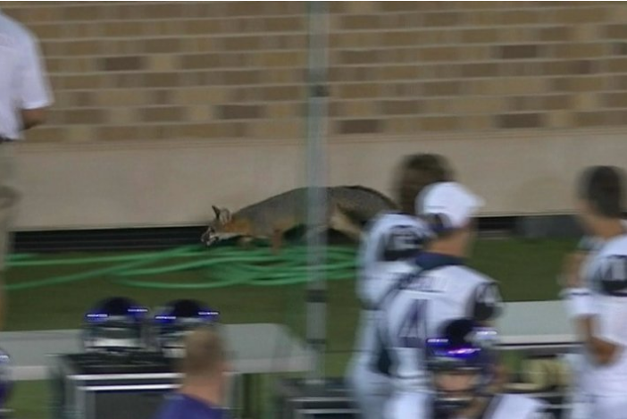 I have no idea how this fox made it’s way into the stadium, let alone on the field, during the Texas Tech-TCU game, but...
