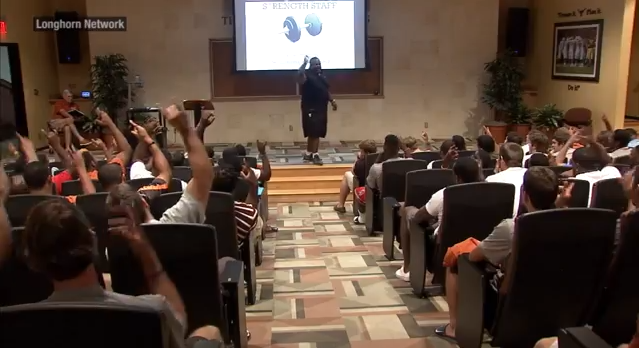 Texas Longhorns strength and conditioning coach Jeff Madden got the team worked up into a pretty big frenzy before their first team meeting of...